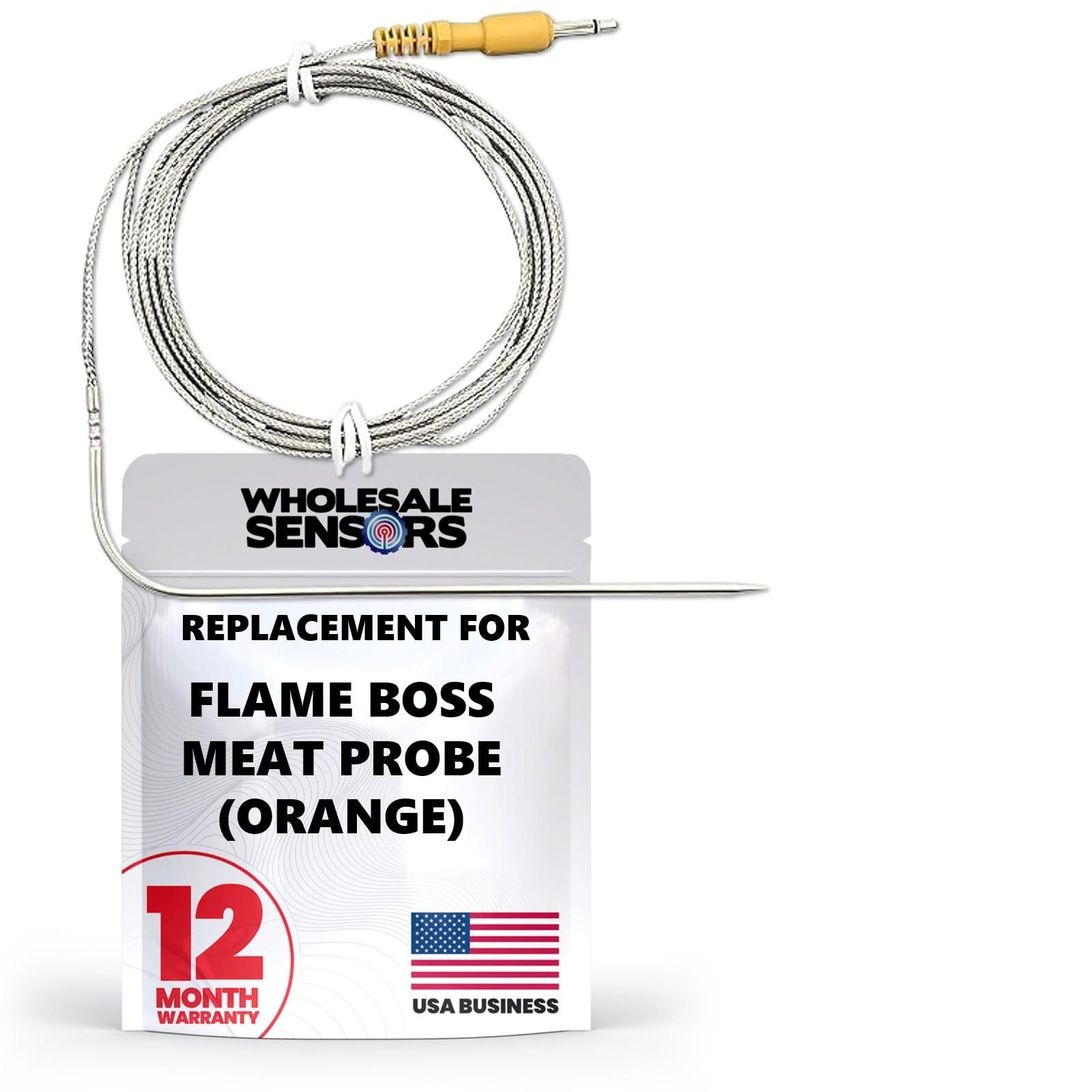 Enhance your grilling experience with the Flame Boss Replacement High Temperature Meat Probe with Straight Plug (Orange). Designed to deliver precise temperature readings and withstand high heat, this durable meat probe is an essential accessory for any serious pitmaster. The vibrant orange color ensures easy identification and adds a touch of style to your grilling setup. Backed by a 12-month warranty, this probe guarantees reliability and peace of mind. Compatible with various Flame Boss models, it offers versatility and convenience, making it a perfect addition to your barbecue toolkit.