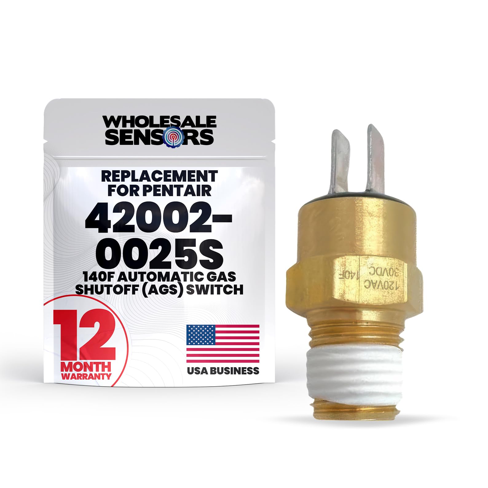 The Pentair Replacement 140F Automatic Gas Shutoff (AGS) Switch 42002-0025S is an essential safety component for pool and spa heaters, designed to prevent overheating by automatically cutting off the gas supply when temperatures exceed 140�F. Specifically engineered to fit Pentair Sta-Rite Max-E-Therm heater models SR200, SR333, and SR400, this replacement switch ensures seamless integration and reliable operation. Made from durable, high-quality materials, it withstands high heat, humidity, and chemical exposure, ensuring long-term functionality in demanding environments. Its advanced sensor technology delivers accurate temperature monitoring and a rapid shutoff response to maintain safe water conditions. Installation is quick and straightforward, allowing for hassle-free replacement without the need for professional assistance. Backed by an 18-month warranty and supported by a trusted USA-based manufacturer, this switch provides peace of mind and dependable performance for maintaining a safe and efficient heating system. swimming pool heater parts accessories, pentair light switch, pool heater parts, pool heater, limit switch, gas heater, electric pool heater, pool heaters, spa heater, sensor switch, pool maintenance kit, pentair pool heater, pool repair kit, thermistor temperature sensor, heater for pool, heat sensor, pentair temperature sensor, swimming pool heater, pool spa replacement parts, water heater parts, sensors kit, thermal sensor, heater switch, switch repair kit, gas sensor, pool heater pressure switch, heat switch, swimming pool heaters, pool opening kit, pool water heater, pool temperature sensor, gas pool heater, water pressure switch, sensor kit, pentair pool pump parts, water flow switch, master heater parts, small pool heater, water heaters parts, heat set insert kit, swimming pool water heater, outdoor pool heaters, water pool heater, high limit sensor, water heater for pool, opening pool kit, heat pool, pool plugs.