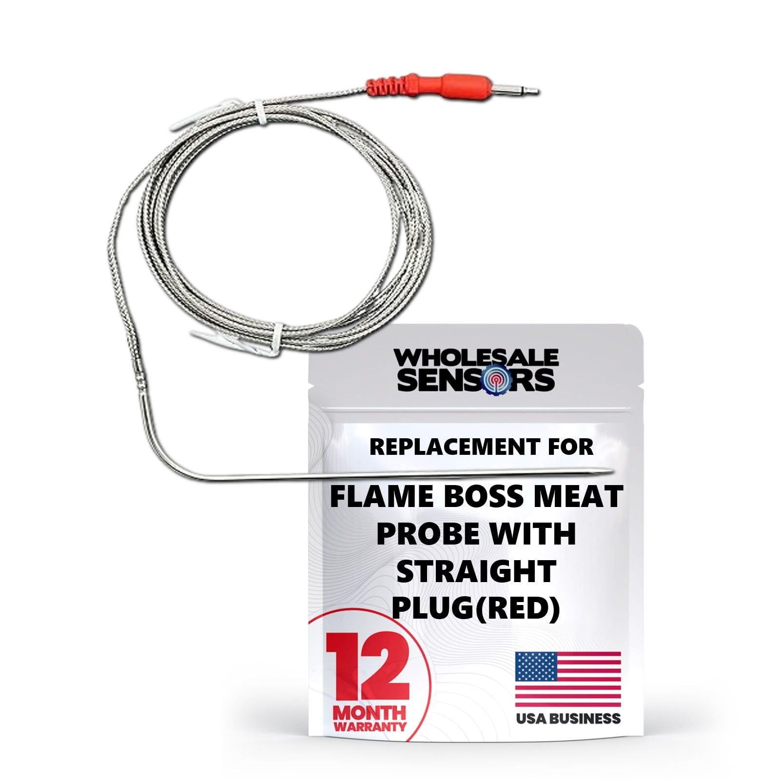 Replacement Flame Boss High Temperature Meat Probe with Straight Plug (Red) 12 Month Warranty