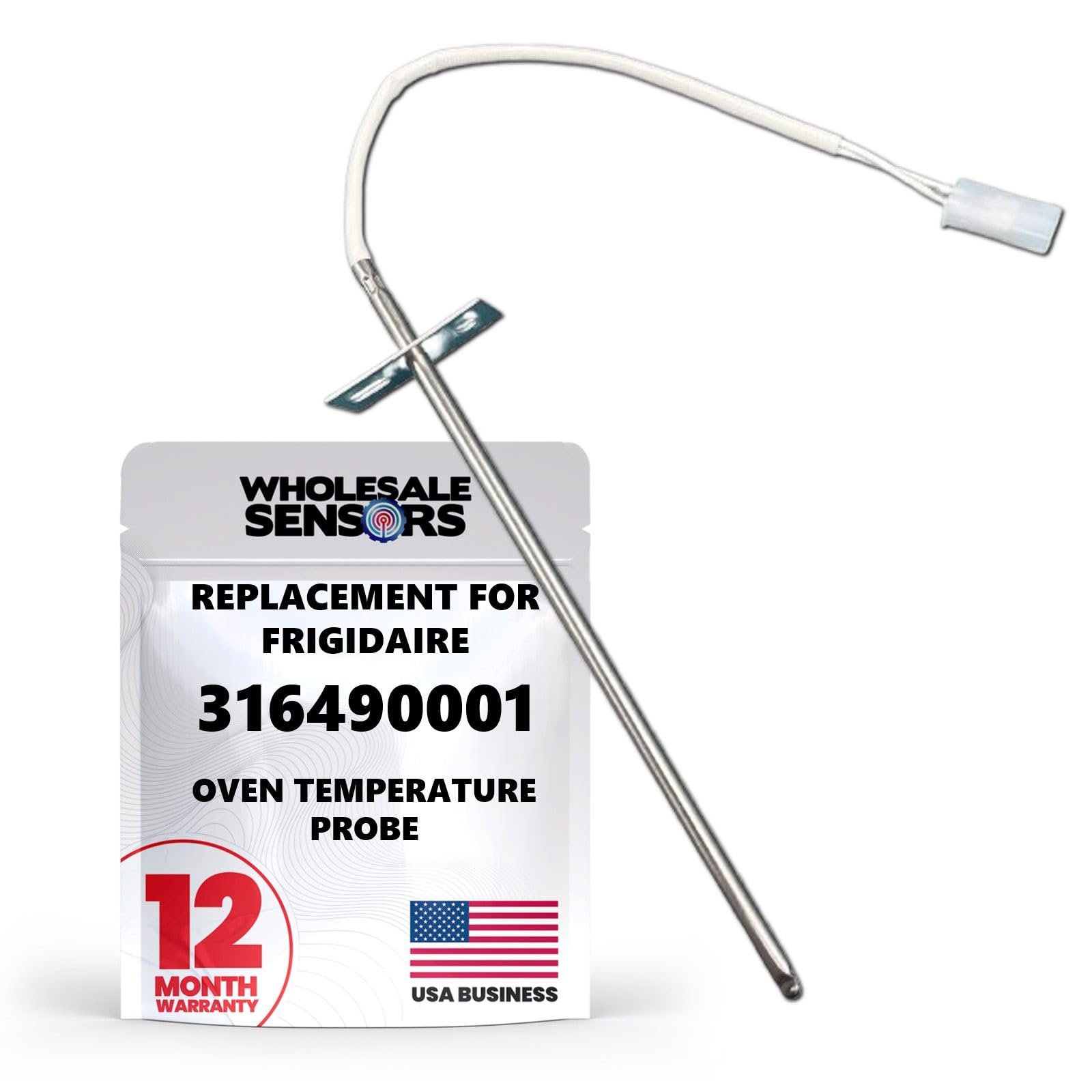 Ensure precise cooking and consistent oven performance with this Replacement for Frigidaire 316490001 Oven Temperature Probe, engineered to meet OEM specifications. This high-precision probe monitors the internal oven temperature and communicates directly with the control board, allowing your appliance to maintain accurate heat levels for consistent baking, roasting, and broiling. A failing oven temperature probe can cause uneven cooking, extended preheat times, inaccurate temperature readings, or overheating. Installing this replacement probe restores proper temperature regulation, improving cooking consistency and returning your oven to reliable, efficient performance. Built with durable, heat-resistant materials and high-quality wiring, this sensor is designed to withstand repeated high-temperature cycles. Its direct-fit design ensures easy installation for homeowners, appliance repair technicians, or property managers, minimizing downtime and restoring dependable oven operation. Ideal for Frigidaire ovens that require precise temperature control to achieve consistent results every time you cook.